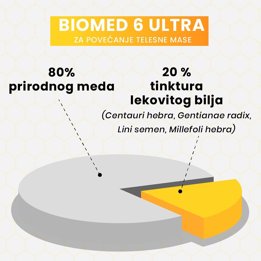 Ako već dugo pokušavaš da se ugojiš i nikako ne uspevaš, znaš koliko to ume da bude frustrirajuće. Jedeš više, probao si razne preparate, ali kilogrami se ne zadržavaju.Biomed 6 Gain je prirodan način da telo konačno počne da koristi hranljive materije onako kako treba. Kombinuje 80% čistog meda i biljne tinkture koje povećavaju apetit i stabilizuju metabolizam.Klinički je potvrđeno da već posle šest dana dolazi do vidljivog povećanja mišićne mase i obima tela. Biomed 6 Gain vraća snagu, energiju i ravnotežu — bez štetnih efekata.